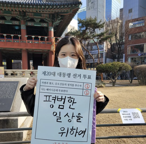 2022년 3월 4일 제20대 대통령 선거 방송연설에 참여하였고 2022년 3월 10일부터는 본격적으로 민주당의 산하에 합류하여 정치인의 행보를 걸으며 페미니즘 담론을 펼치기 시작하였습니다.
