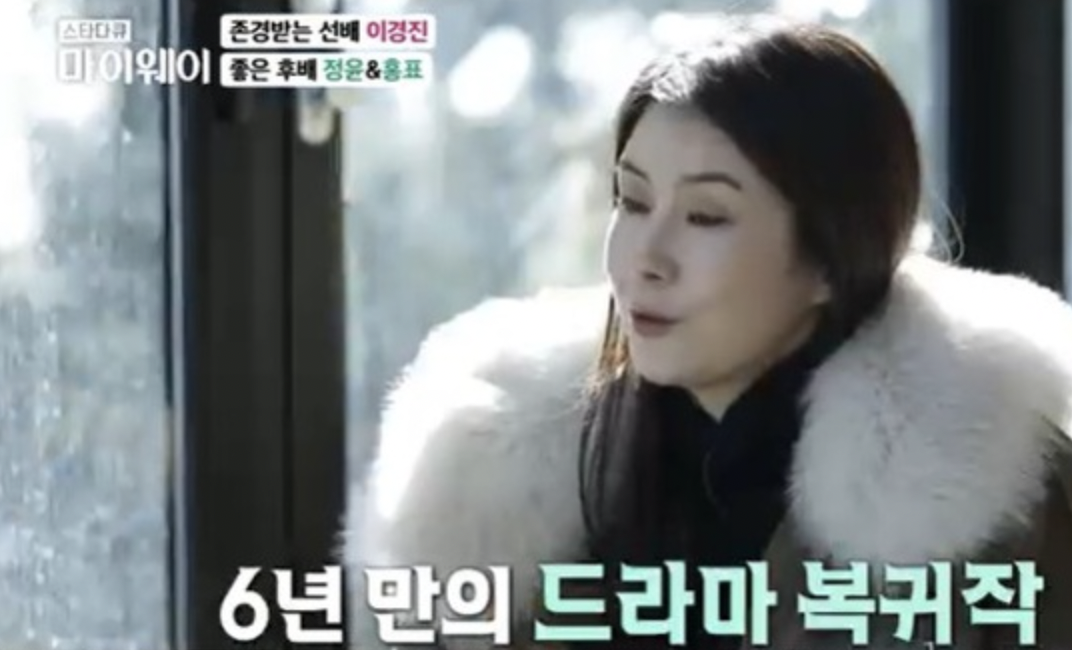 이경진은 아모르파티로 6년 만에 복귀했다는 최정윤에게 '쉬었다가 나오면 긴 대사가 술술 외워지는 효과가 있다' 면서 '대사가 많더라도 눈을 보면 즐거움이 보이더라'라고 말했습니다.